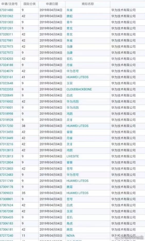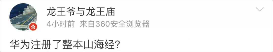今年4月初,华为还注册了一堆商标,有“朱雀”“玄机”“海蓝兽”“紫薇星”“獬豸”等,它们都是来自于《山海经》里的神兽。