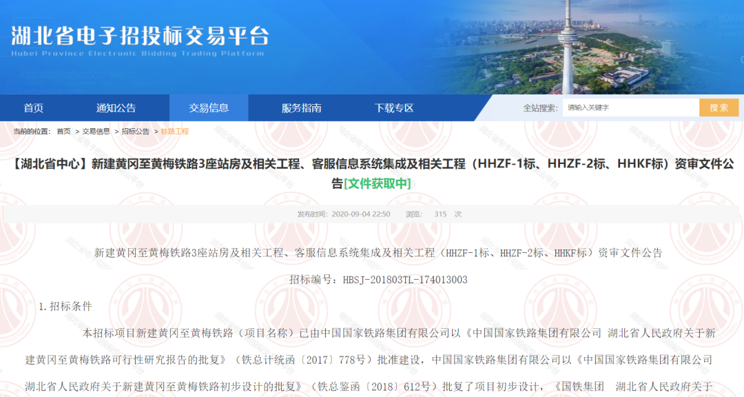 9月4日,《 新建黄冈至黄梅铁路3座站房及相关工程、客服信息系统集成及相关工程(HHZF-1标、HHZF-2标、HHKF标)资审文件公告》正式发布。标志着黄冈至黄梅高铁各车站站房工程即将进入正式施工阶段。