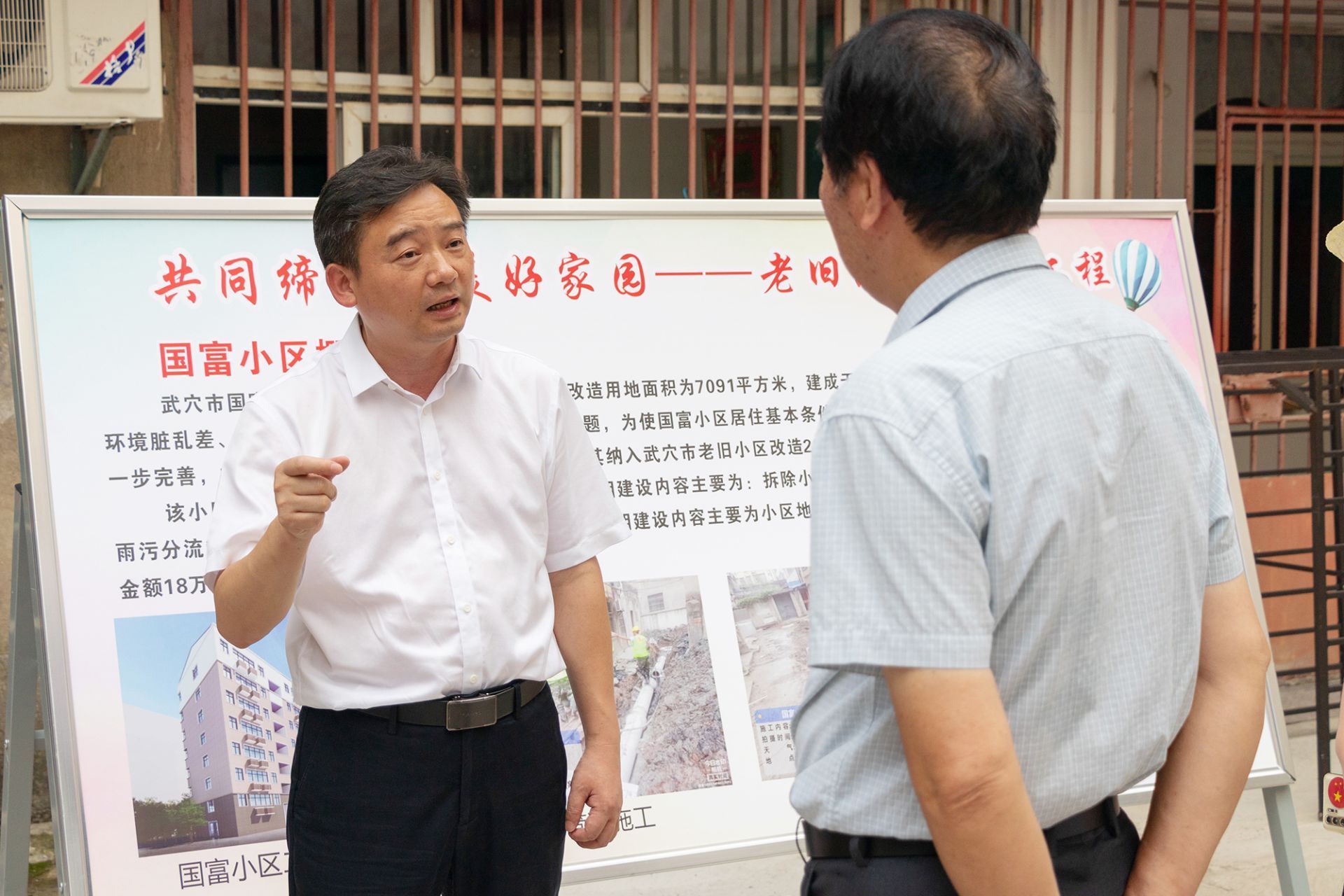 “老旧小区改造聚焦人民群众对美好环境与幸福生活的向往,我们要通过优规划、增设施等手段,使小区环境变美、形象变靓”。在国富小区,胡昊详细了解小区改造、党建引领、群众自治等情况,对国富小区共同缔造工作成效给予充分肯定。
