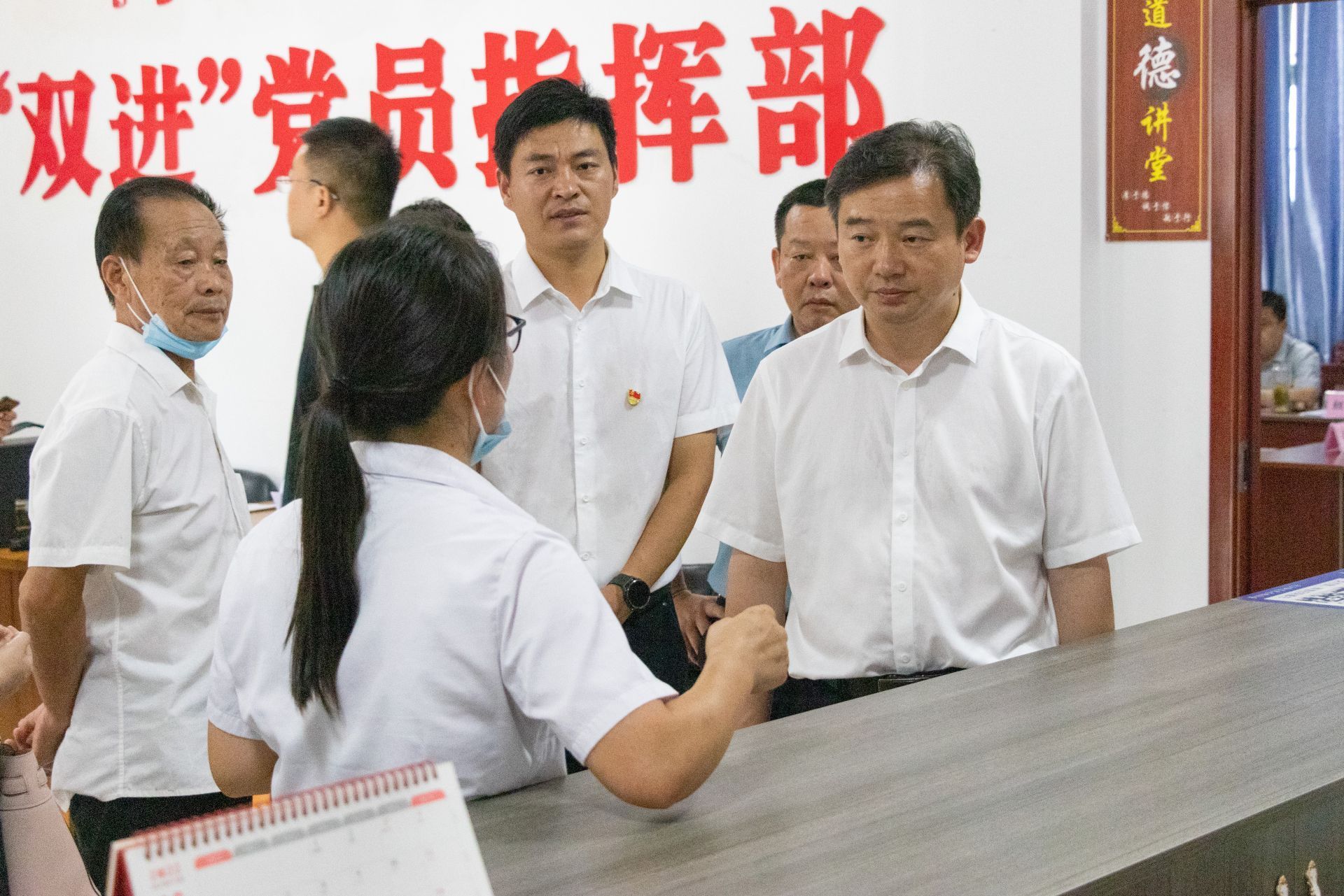 在梅园小区,胡昊走进文化活动广场、品硕服装扶贫车间,对梅园小区坚持党建引领小区治理理念,积极构建单位攻坚、居民志愿、党员示范联动共建体系,深入推进共同缔造表示赞赏。