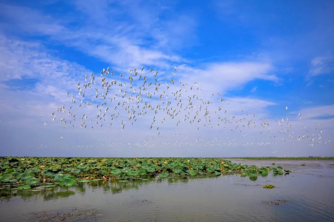洪湖飞鸟翔集。肖杨 摄