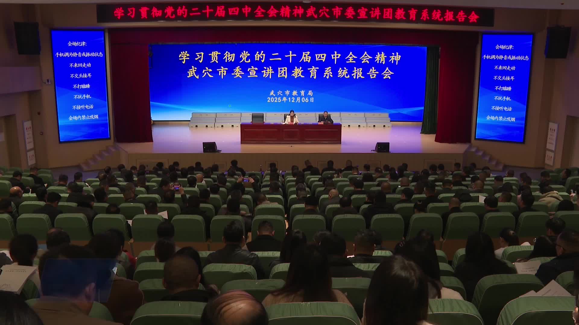 12月6日,学习贯彻党的二十届四中全会精神武穴市委宣讲团教育系统宣讲报告会举行,市委宣讲团成员、市教育局党组书记、局长周桂兰作主题宣讲。宣讲报告从历史方位、战略部署、实践要求三方面系统解读全会精神,重点阐明全会“三个重大判断”的核心内涵与《建议》的指导意义,解读“十五五”时期指导思想、“六个坚持”原则、发展目标及重点任务,结合“十四五”武穴教育发展成效,分析了新时期教育面临的资源配置、队伍建设等关键课题。