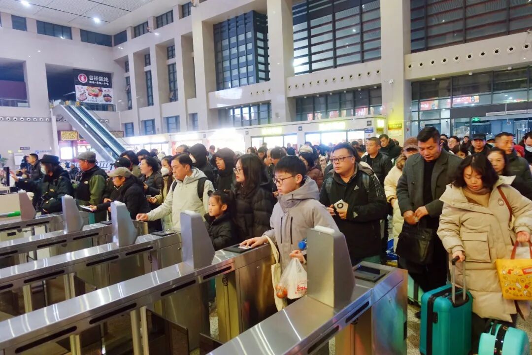 春运首日,荆州火车站迎来出行小高峰,但整体运行平稳有序。上午,站内人来人往,旅客们提着大包小包,脸上洋溢着归乡的期待。为应对客流,车站增派了工作人员和志愿者,在进站口、候车大厅等区域为旅客提供引导、咨询等服务。“工作人员帮我提行李,还告诉我怎么快速进站,太贴心了!”准备回老家过年的王女士说道。