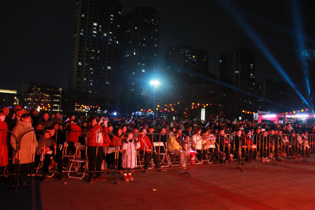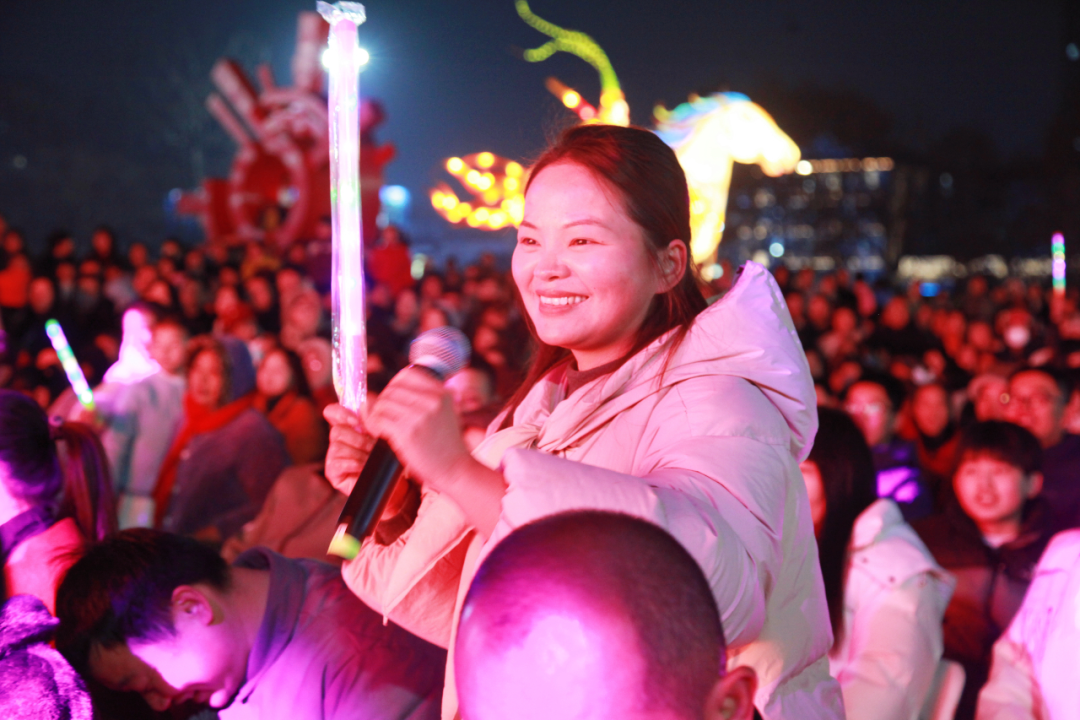夜幕降临,演出现场人头攒动、座无虚席,大红灯笼与绚丽花灯、舞台灯光交相辉映,处处洋溢着欢乐祥和的新春气息。本地居民、返乡游子扶老携幼齐聚现场,早早等候演出开启,用手机记录美好瞬间,共赴家门口的新春文化之约。