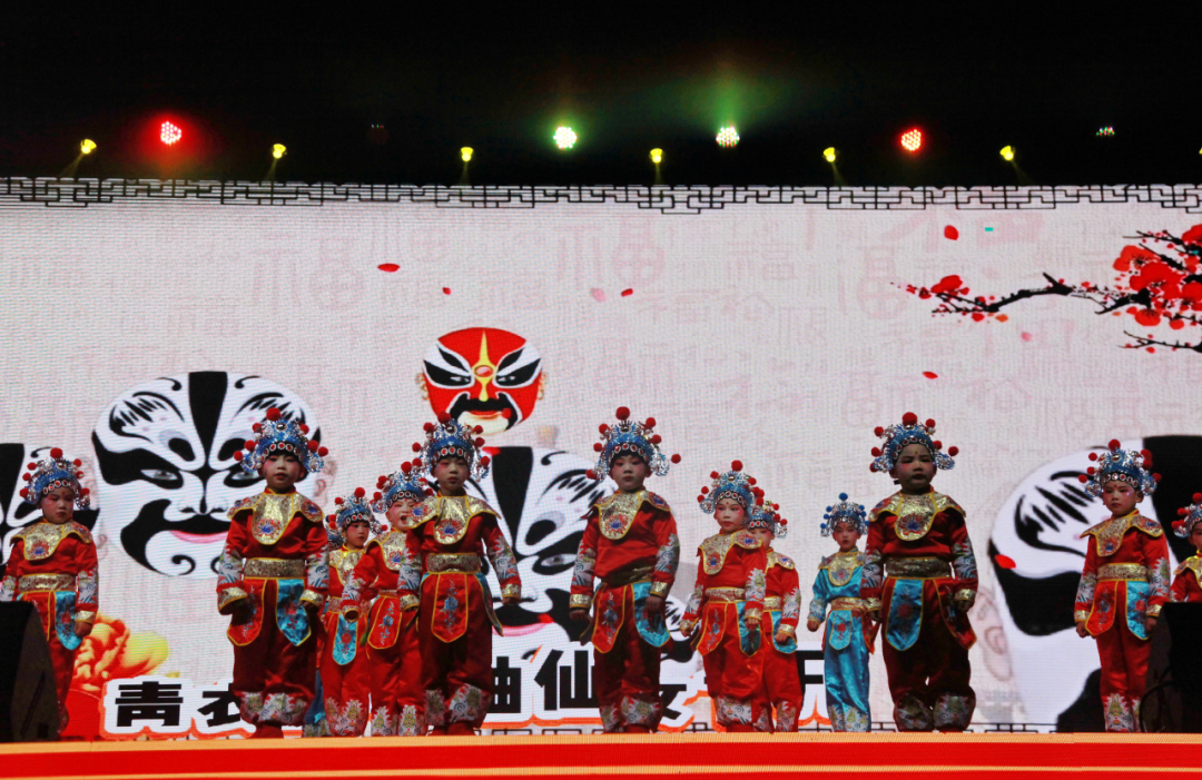 整场演出内容丰富、形式多元,传统国粹与现代潮流交融,本土特色与时代气息碰撞,个个亮点纷呈、高潮迭起。开场舞《凤舞春晖,涅槃焕彩》灵动大气,瞬间点燃全场热情;男女对唱《共筑中国梦》旋律激昂,唱出新时代同心筑梦的信念;少儿国粹连说《声动戏韵》童趣盎然,尽显传统文化魅力。