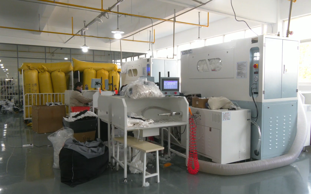 3月12日,走进法良时装(湖北)有限公司生产车间,窗明几净的现代化厂房内,一排排自动化设备整齐排列,开足马力运转。裁剪、缝制、充绒等各道工序衔接顺畅。工人们在各自工位上有条不紊地忙碌着,整个车间繁忙而有序,展现出一派产销两旺的喜人景象。