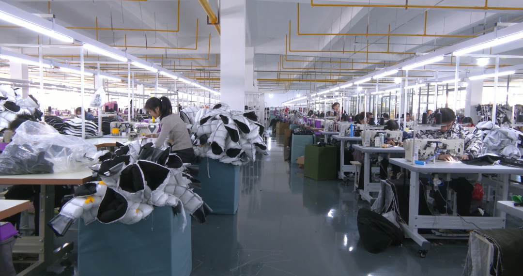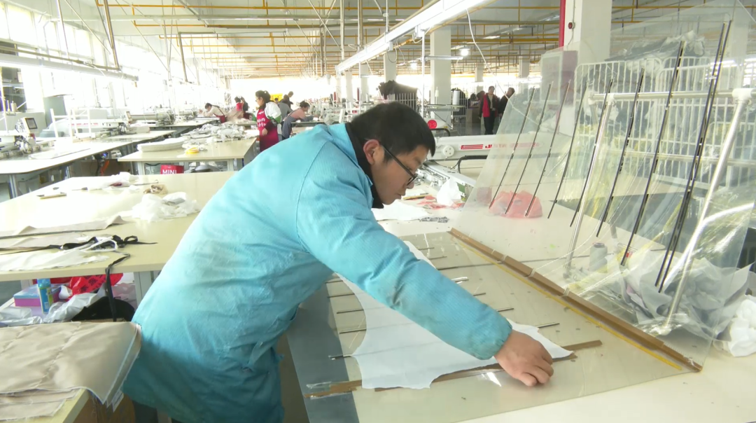 缝纫机前,工人胡芬正专注地操作着设备。“大厂工作稳定,工资又高,环境整洁还有社保,干得很安心。”她对这里的工作条件十分满意。正是这样的工作环境和待遇,让越来越多当地群众选择在家门口就业。目前,生产线运转顺畅,员工精神饱满,干劲十足。
