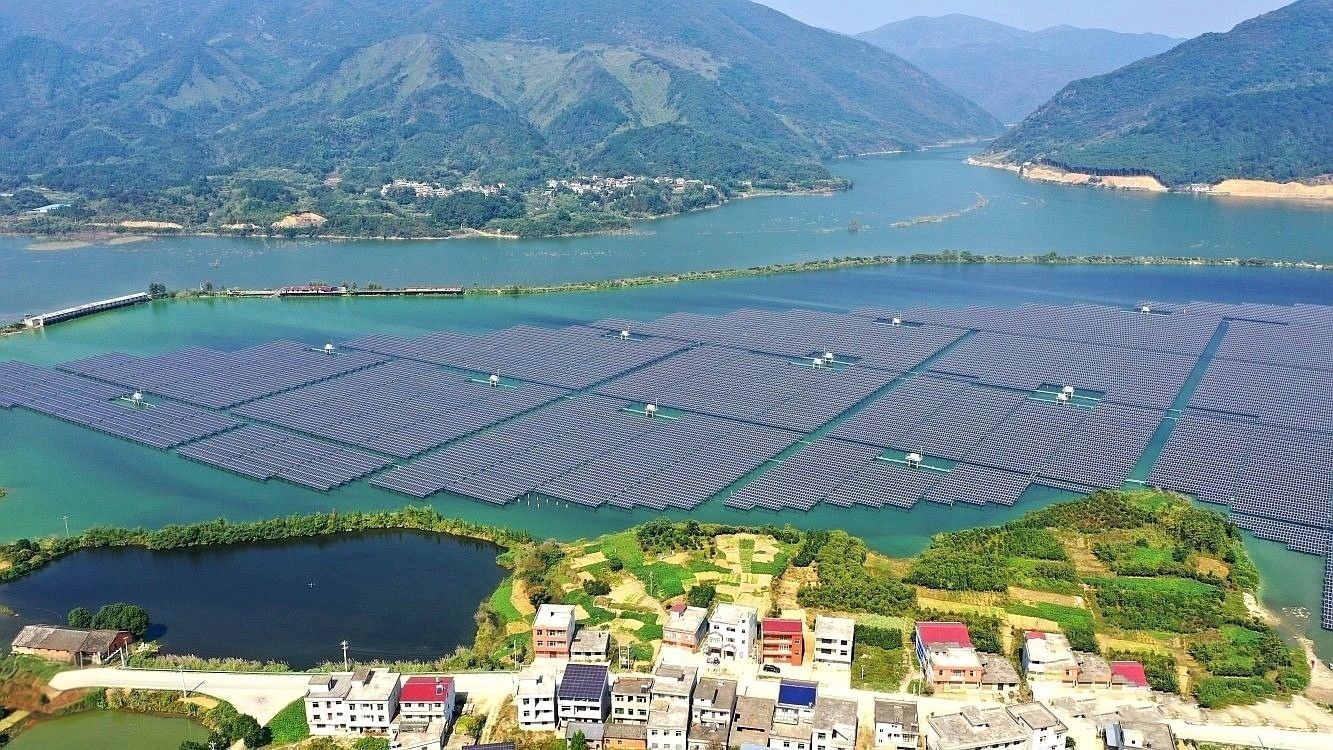 从大畈镇远眺,53.8万块光伏板依山就势铺展,年输送1.79亿度绿电。这座光伏矩阵,不仅是全省重要的清洁能源基地,更是通山将生态优势转化为发展胜势的鲜活注脚。