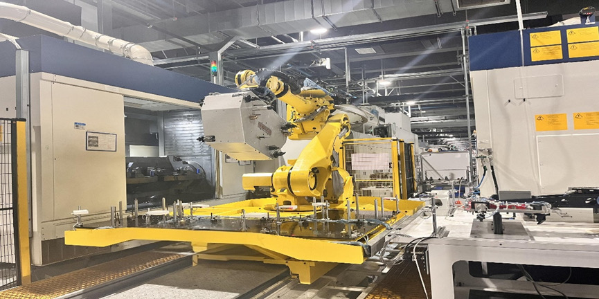 ▲襄阳美利信的生产车间里,全球领先的智能化压铸岛犹如钢铁巨人