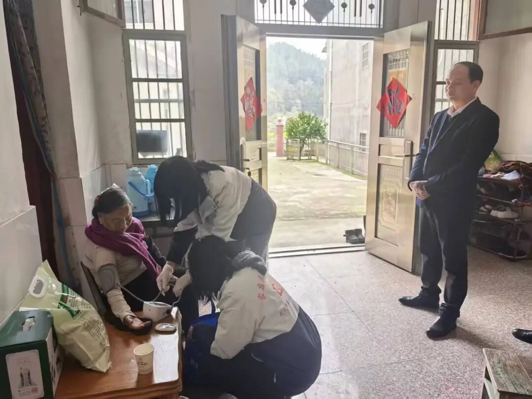与此同时,梅川镇紧盯在外乡贤群体的后顾之忧,联合市二医院组建专项服务专班,逐户上门为乡贤家属开展健康体检。截至目前,已累计完成32户外出乡贤父母上门体检服务,重点开展血压血糖、心电图、B超等项目检查,细致讲解健康注意事项,并同步建立电子健康档案,对高龄、行动不便老人提供后续复查与健康监测服务。贴心周到的医疗服务,有效解决了乡贤在外打拼的牵挂,温暖了乡贤之心,也进一步厚植了“迎老乡、回故乡、建家乡”的情感根基。